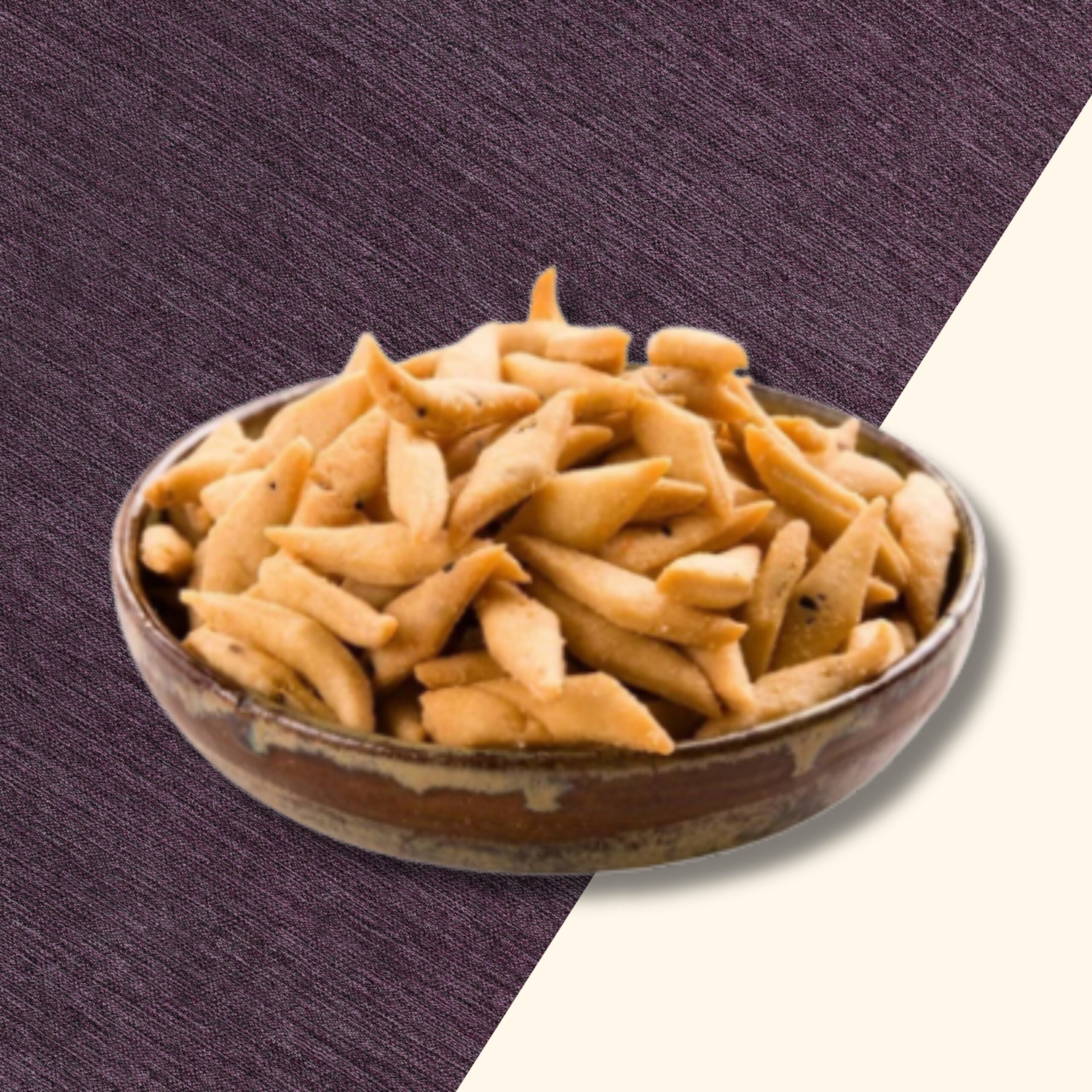 Made from a simple yet flavorful blend of wheat flour, semolina (suji), and a touch of carom seeds (ajwain), our Namak Para is carefully kneaded, hand-cut into bite-sized diamonds, and then slow-fried to golden perfection. Every piece is light, crispy, and full of flavor, offering a satisfying crunch that makes it almost impossible to stop at just one.